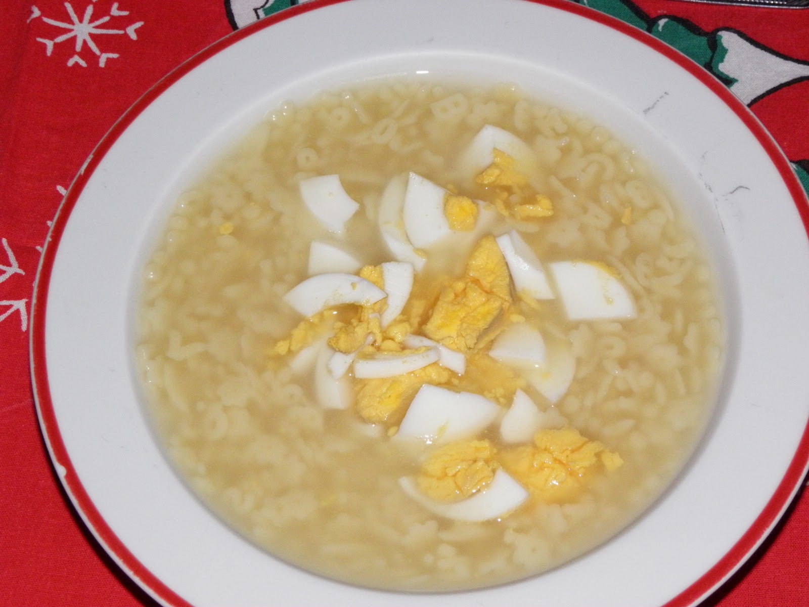 • 1/2 caldo de galinha, água, massa para canja, ovo 1 folha de hortelã;